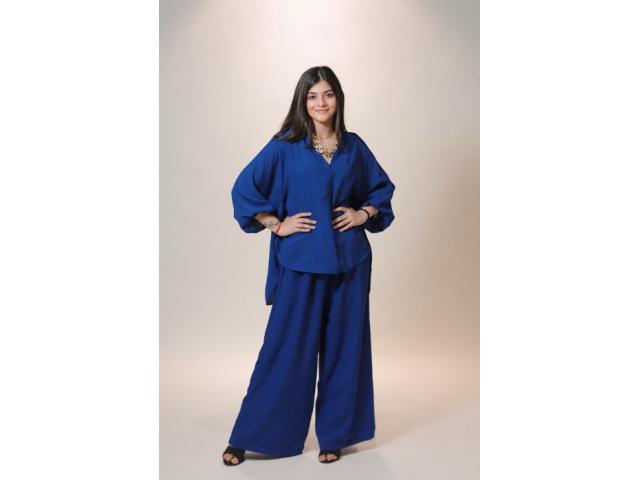 Shop Diva presents the Royal Blue Co-Ord Set, crafted in a premium cotton blend. This timeless, chic outfit blends comfort and modern style, making it a must-have for every woman’s wardrobe.