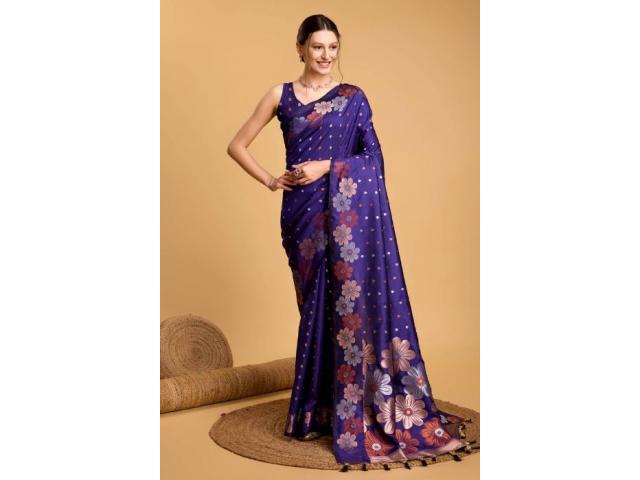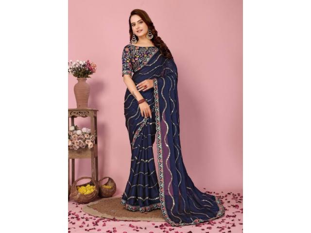 Buy Royal Blue Saree with Bold Colour Online at Mirraw