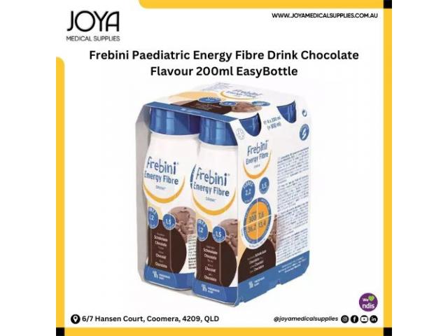 Get Frebini paediatric energy fibre drink chocolate flavour 200ml easybottle from Joya Medical Supplies. Frebini energy fibre drink high energy 1.5 kcal/ml–300 kcal per bottle, protein: 7.6g per bottle fibre free, and adapted fat profile with mct.
