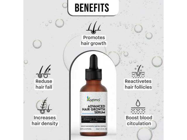 Buy now the most exclusive Advanced Hair Growth Serum from : https://www.kazima.co.in/product/hair-growth-serum . Hair growth serums boost hair thickness, strength, and density by nourishing follicles with essential nutrients. They reduce hair fall, promote healthier scalp conditions, enhance shine, and support faster growth, making hair appear fuller and more resilient.