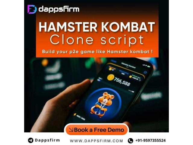Hamster Kombat Clone Script: A Hamster Kombat clone script is a ready-made solution for creating a similar Telegram-based crypto game where players manage a virtual crypto exchange and earn HMSTR coins. Dappsfirm offers this hamster kombat clone script at minimal cost, enabling quick launch and customization. This white-label hamster kombat clone game includes strategic gameplay, daily bonuses, and real cryptocurrency rewards, replicating the viral success of the original Hamster Kombat game. Build and launch your own engaging play-to-earn game effortlessly with Dappsfirm's clone script.