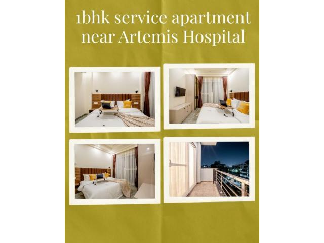 Book a 1BHK service apartment near Artemis Hospital, Gurgaon, offering a fully furnished 1 bedroom serviced apartment for short-term stays, monthly rentals, and extended medical visits.