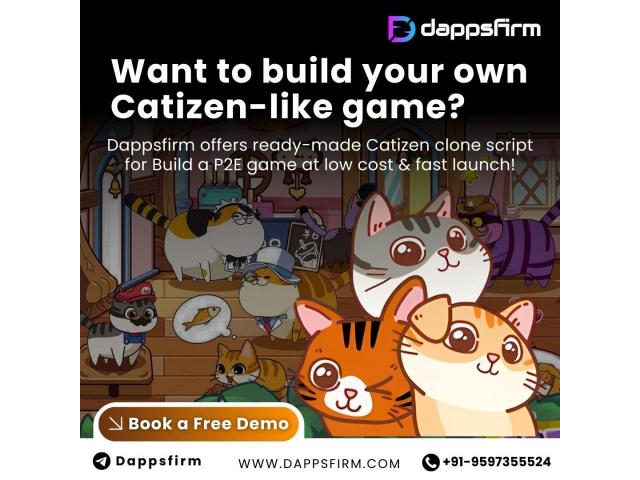 A Catizen clone script is a ready-made software solution to replicate the popular play-to-earn game, Catizen. It offers Telegram integration, customizable gameplay, and a play-to-earn model, enabling players to earn crypto. DappsFirm delivers Catizen clone scripts at minimal cost and with a quick launch, making it easy to start your own gaming platform.