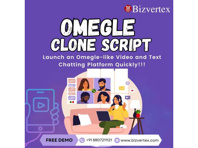 Looking to launch a Text and video chatting platform? Bizvertex offers the perfect solution with our Omegle Clone Script. Build your own Omegle Clone App with robust features, including seamless video chat, random matching, and real-time communication. Our ready-made solution is customizable and cost-effective, allowing you to quickly enter the booming video chat market. Start your successful video chat platform today with Bizvertex’s trusted Omegle Clone Script.