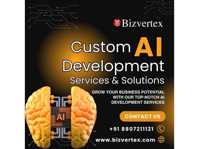 Bizvertex, the leading AI Development Company, delivers tailored AI solutions to drive your business forward. Specializing in Custom AI Services, we partner with enterprises to create next-gen innovations that optimize operations, enhance decision-making, and boost growth. With cutting-edge technology and industry expertise, Bizvertex transforms challenges into opportunities, ensuring your business stays ahead in the competitive landscape. Choose Bizvertex for a strategic edge in the evolving world of artificial intelligence.