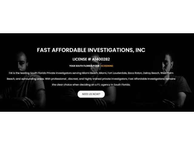 Fast Affordable Investigations is your trusted partner when it comes to uncovering the truth. With our team of highly skilled and experienced Private Investigator Miami, we offer a wide range of services to help you solve your most pressing cases. From surveillance and background checks to infidelity investigations and asset searches, we are dedicated to providing you with accurate and reliable results. Rest assured, your confidentiality is our top priority as we work tirelessly to deliver the answers you seek. When you need the truth, trust Private Investigator Miami to deliver.