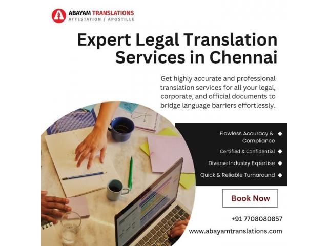 Navigating the complexities of official documentation requires absolute precision. Whether you are a student applying to foreign universities or a business professional expanding into global markets, our professional Legal Translation Services in Chennai provide the accuracy you need.Legal documents are sensitive; a single mistranslated term can lead to visa rejections or legal disputes. We specialize in Certified Translation in Chennai, ensuring that your documents—ranging from court decrees and affidavits to commercial contracts—are legally valid and accepted by embassies, government bodies, and international institutions.Key Services Include:•Academic Translation: Reliable translation of your Bonafede certificate, degree certificates, and transcripts for study abroad.•Corporate Legal Support: Precise translation of Articles of Association, partnership deeds, and non-disclosure agreements.•Personal Documentation: Certified versions of birth certificates, marriage licenses, and police clearance certificates.Don't let a language barrier stall your progress. Our team of legal subject matter experts ensures 100% confidentiality and a fast turnaround. We understand the specific terminology of both Indian and international law, making us the most trusted partner for Legal Translation Services in Chennai. Contact us today for a certified quote and secure your legal documentation's integrity.